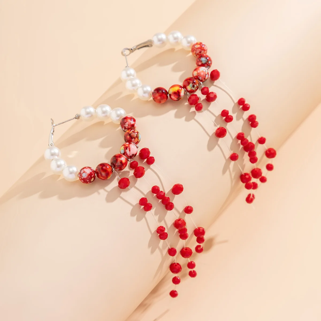 Este colar é uma verdadeira declaração de estilo, unindo múltiplas voltas de pérolas com um detalhe em cascata que lembra "sangue" ou gotículas vermelhas: