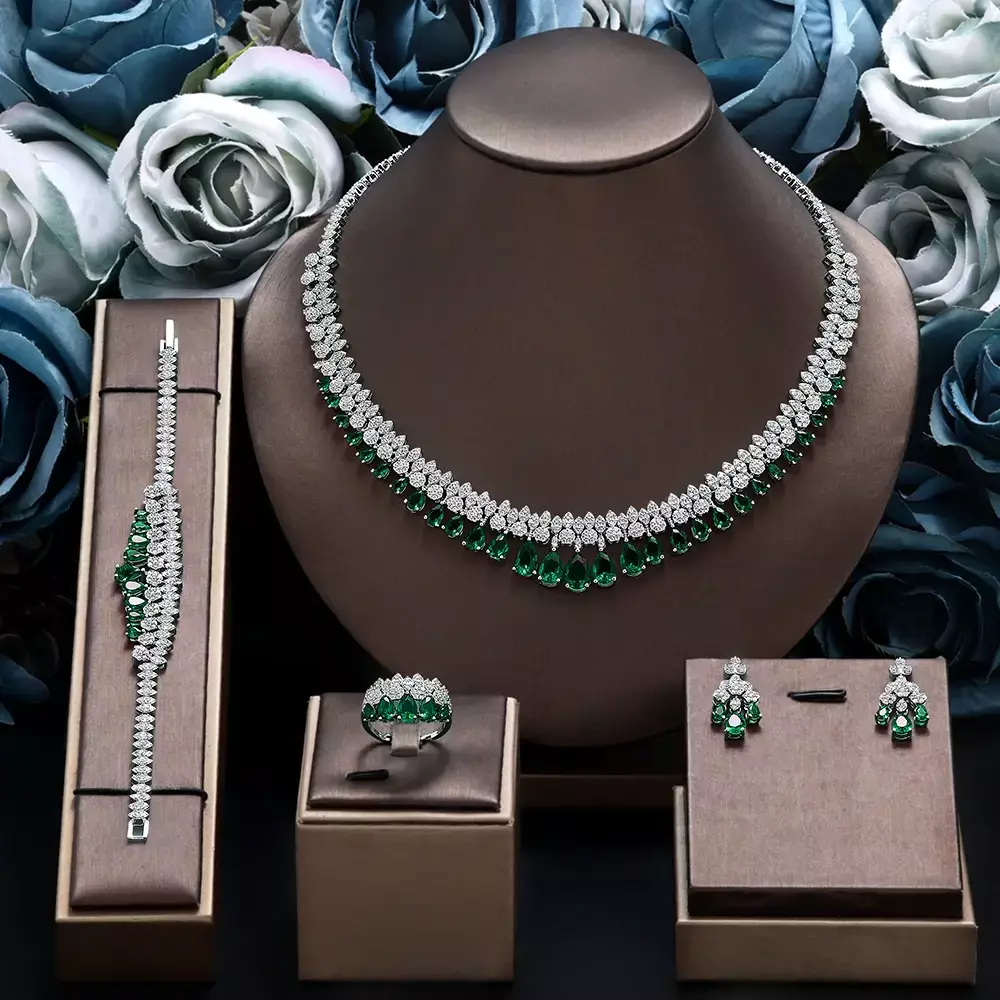 Apresentamos um deslumbrante Conjunto de Joias de Noiva que exala luxo e sofisticação. Ideal para a ocasião mais especial da sua vida, este conjunto completo é feito com materiais de alta qualidade e um design trendy atemporal.
