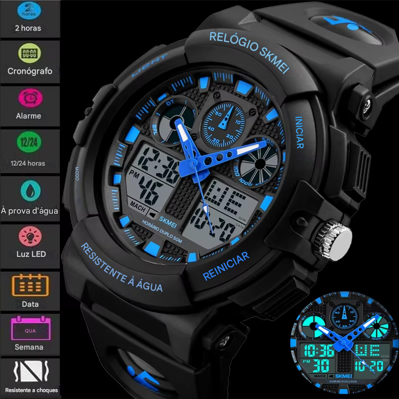 O SKMEI SK1270 é a escolha ideal para quem precisa de um relógio de alto desempenho, repleto de recursos digitais e construído para a vida ativa.